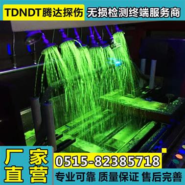 3、通过悬吊式或手持式高强度紫外线探伤灯对磁化区域进行照射,激发荧光磁粉的荧光色(明亮的黄绿色荧光)显现出有裂纹缺陷部位的磁痕。使观察者可以快速清晰的发现具有裂纹缺陷的工件。